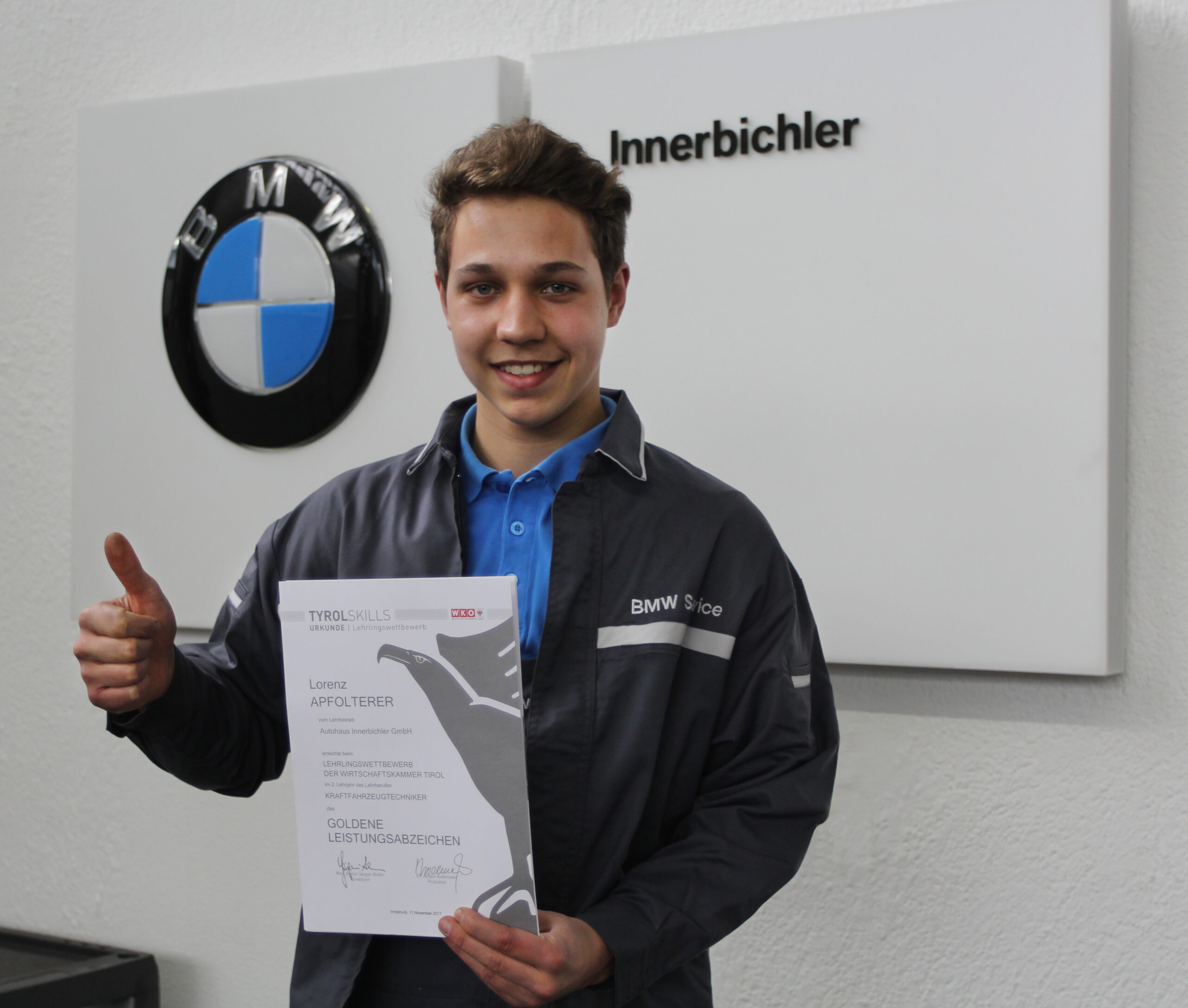 Wir gratulieren unserem KFZ-Techniker-Lehrling (2. Lehrjahr) Lorenz Apfolterer zum „Goldenen Leistungsabzeichen“ beim Lehrlingswettbewerb der WK Tirol!
